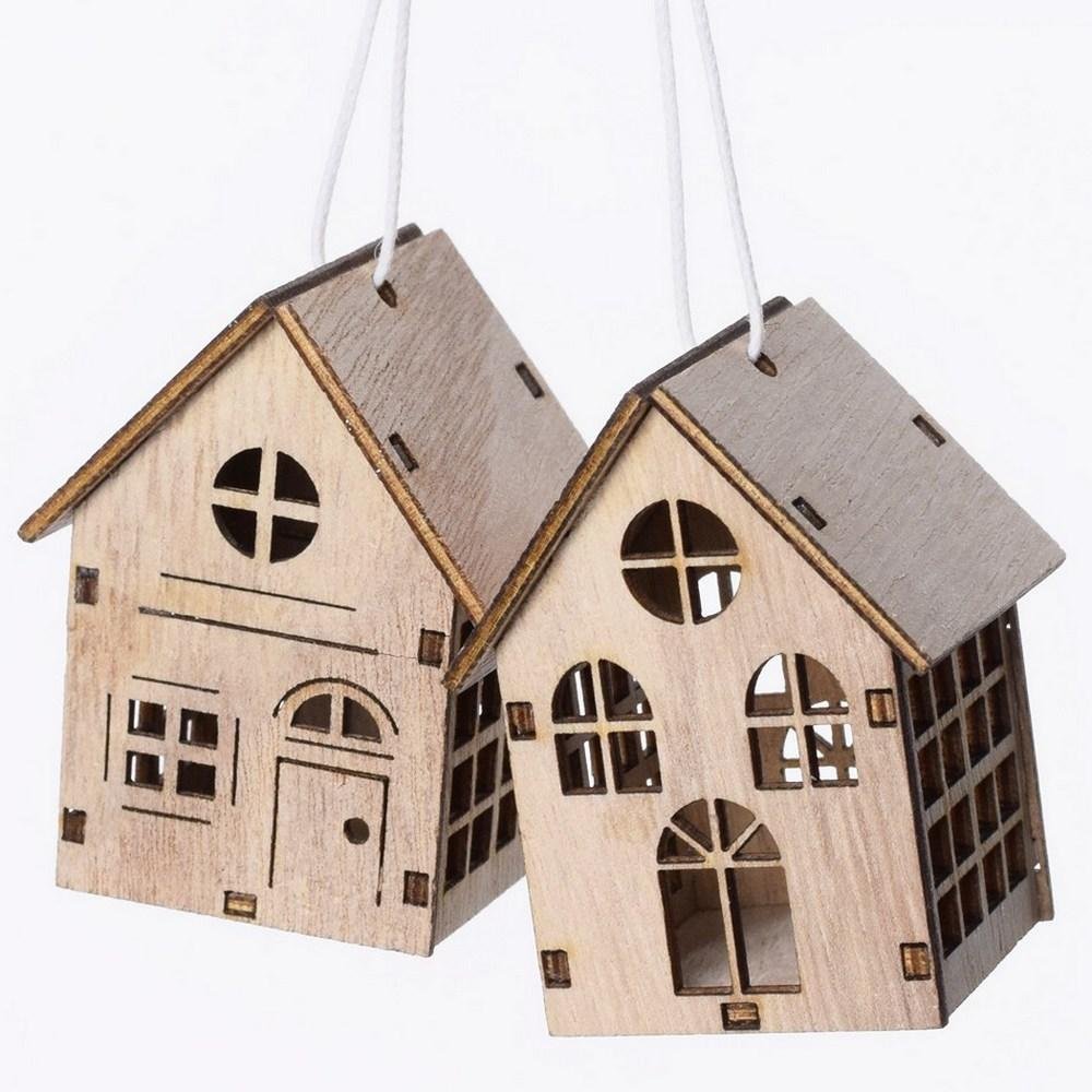 Dekorácia Drevený domček s/2 natural 5x4x6cm