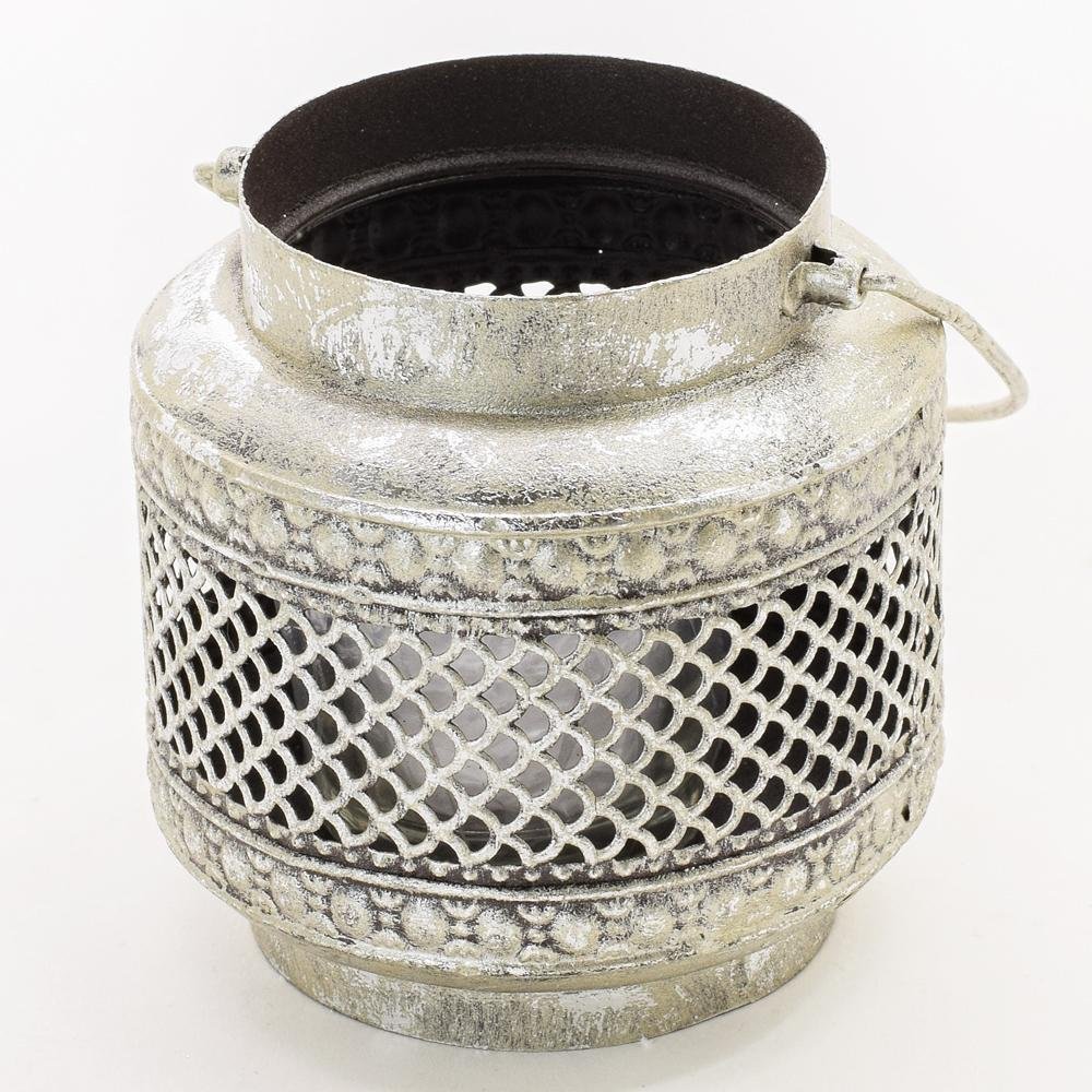 Svietnik kovový vyrezávaný+sklo 10x9,5x9,5cm