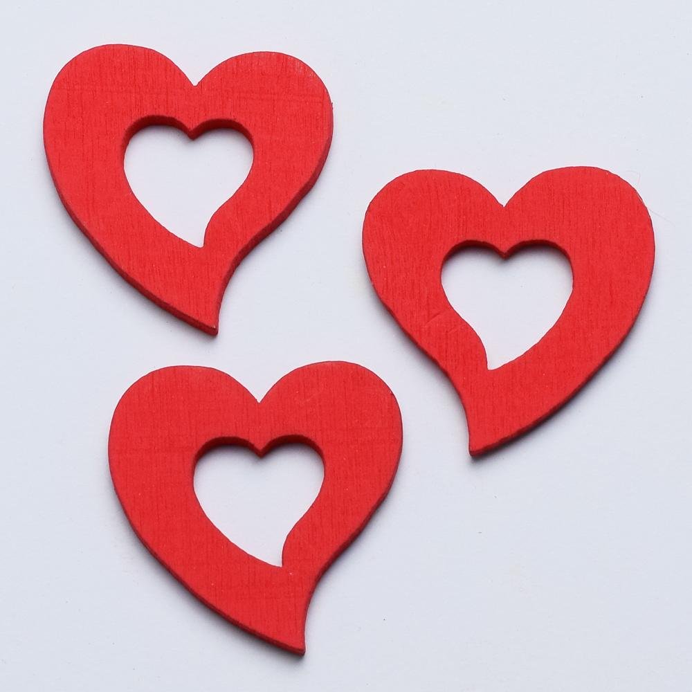 Dekorácia Výrez srdce drev.červené s/40 3cm super cena