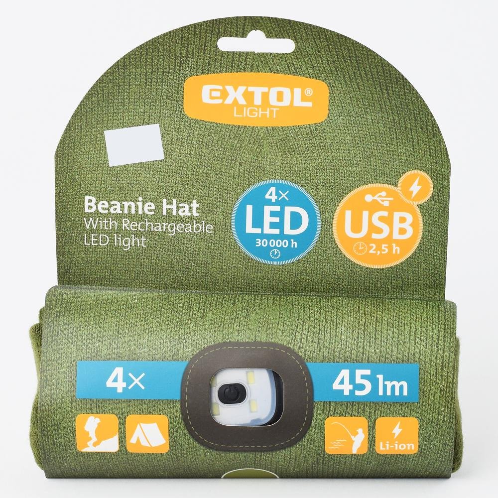 Dekorácia Pevnácenačiapka s čel., zelená 4x led,45lm, 300amh usb nabíjanie