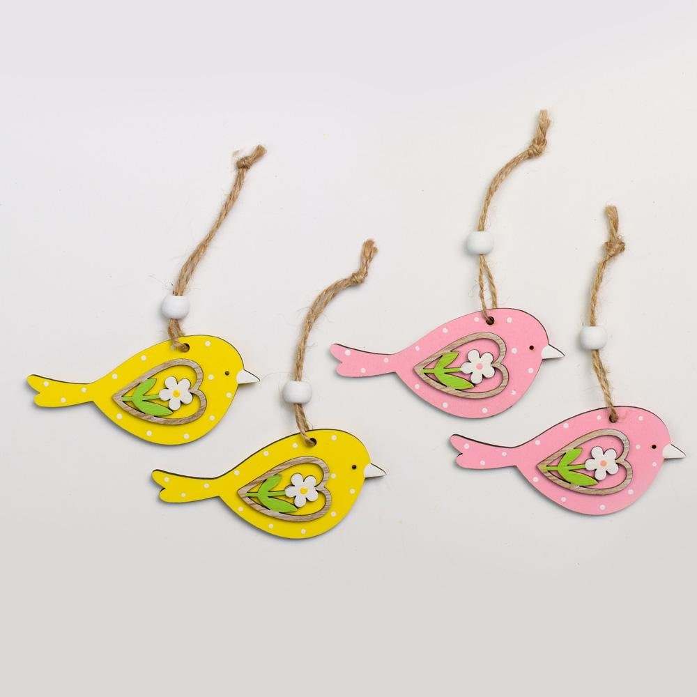 Dekorácia Vtáčik záves drevo s/2 mix f 6.5x10.5cm