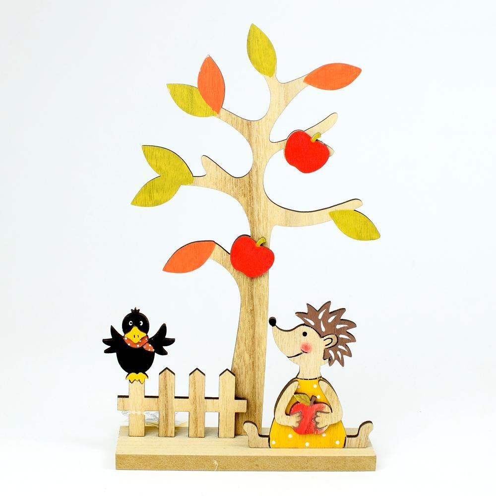 Dekorácia Strom s ježkom drevo 14,5x24,7x5cm