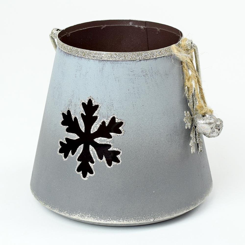 Dekorácia Lampáš výrez vločka kov šedý 11x12x12cm