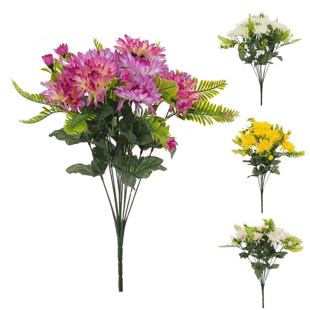 Dekorácia Kytica chryzantéma, drob. kvety, zeleň, 4f 46cm