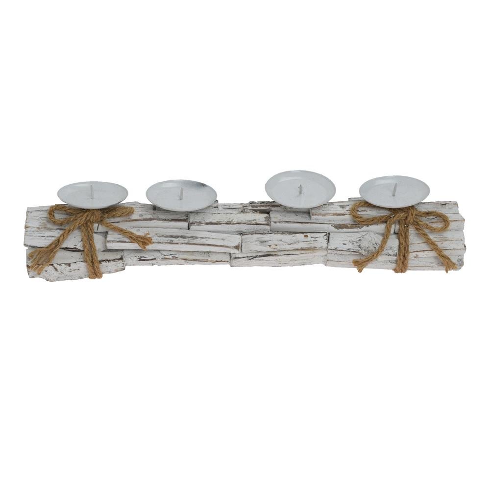 Dekorácia Svietnik siv/hne/bie na 4 sviečky 48x10x9cm