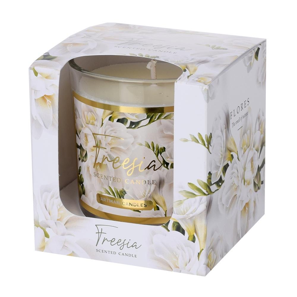 Dekorácia Voň.v skle flores biely 9x8cm