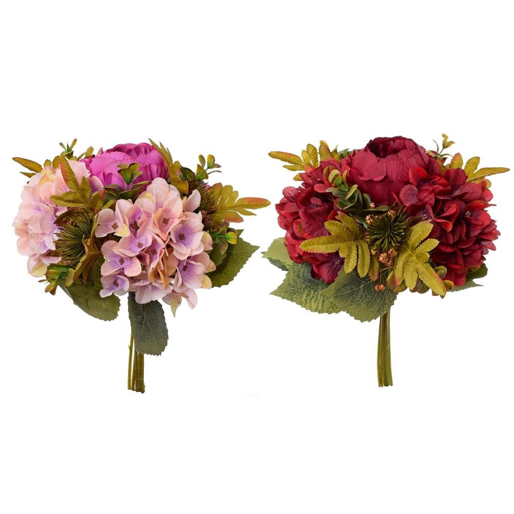 Dekorácia Kytica pivonka, hydrangea, bodliak, zeleň mix 2f 35cm