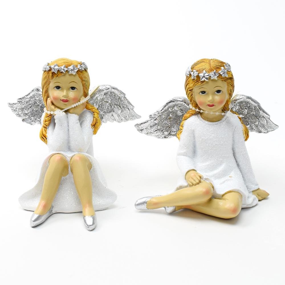 Dekorácia Anjel biely lesklý 11x6x10,5cm mix 2