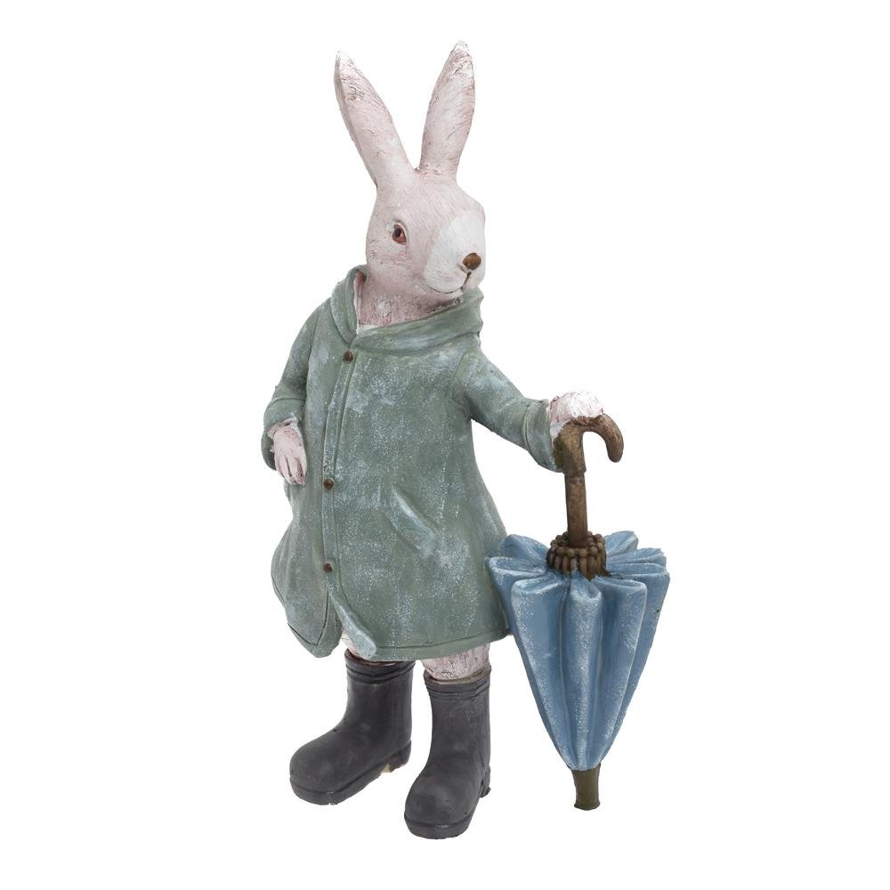 Dekorácia Zajac zelený kabát, dáždnik 19*12*33cm