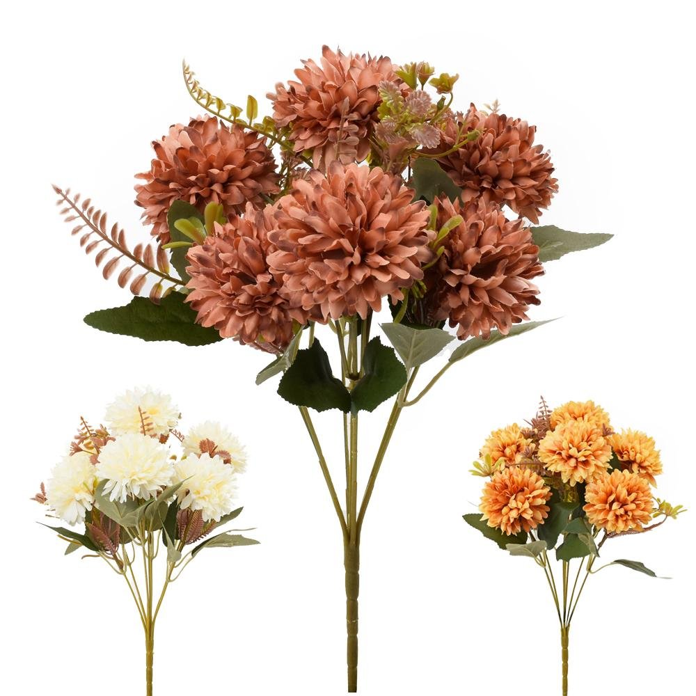 Dekorácia Kytica chryzantéma, zeleň mix/3f 31cm