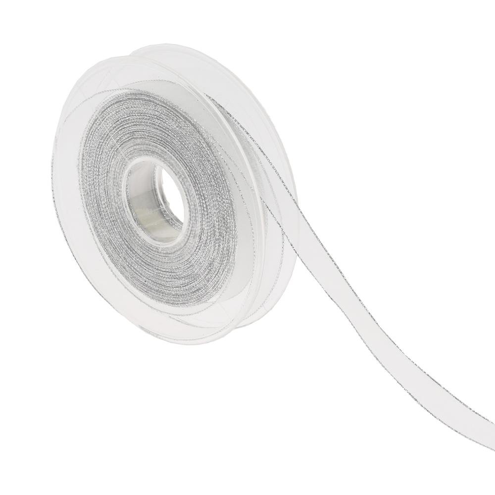 Dekorácia Stuha biela strieborný lem 1,5cm/20m 3348p 40
