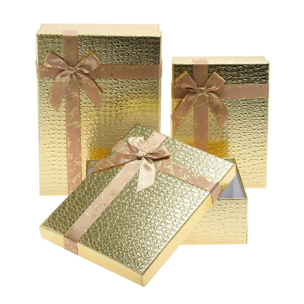 Darčeková krabička obdĺžnik mašľa s/3 23x17x6,5-29x21x9,5cm zlatá