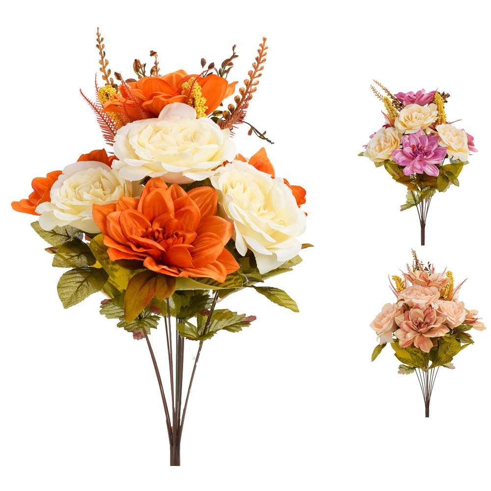 Dekorácia Kytica ruža dahlia 56cm mix 3f vzorkovňa