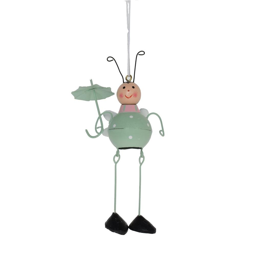 Dekorácia Záves lienka kov 7x4x14cm zelenoružová