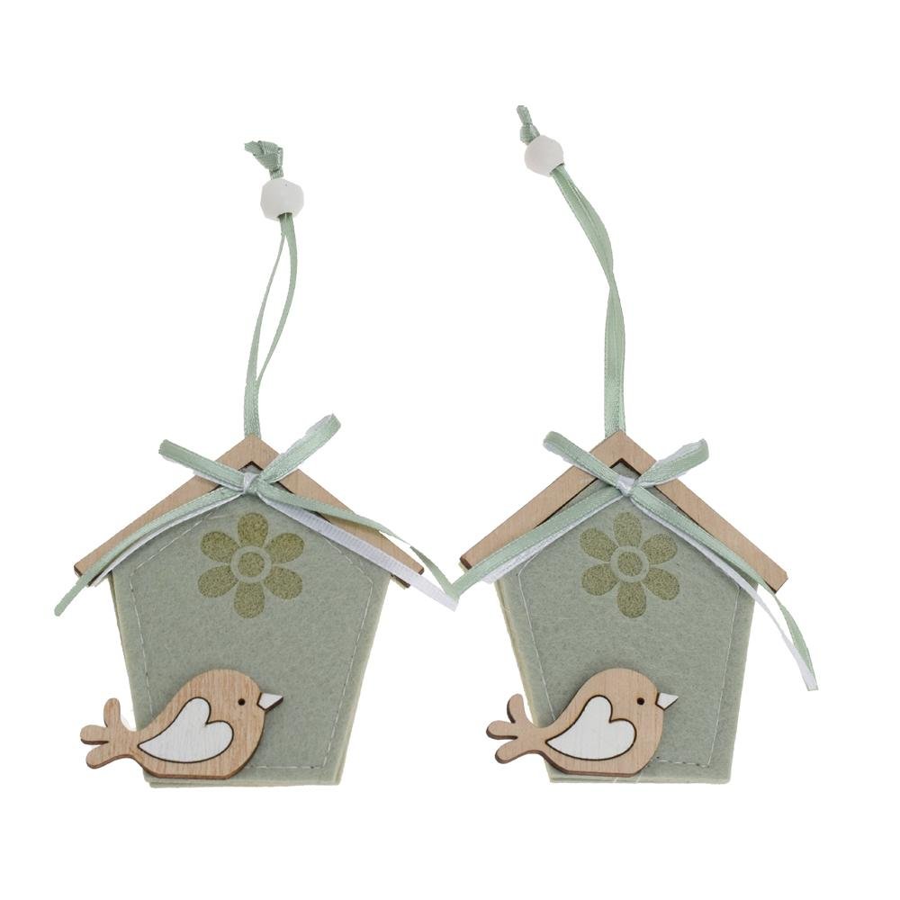 Záves domček textil s/2 7,7x8,5cm zelený