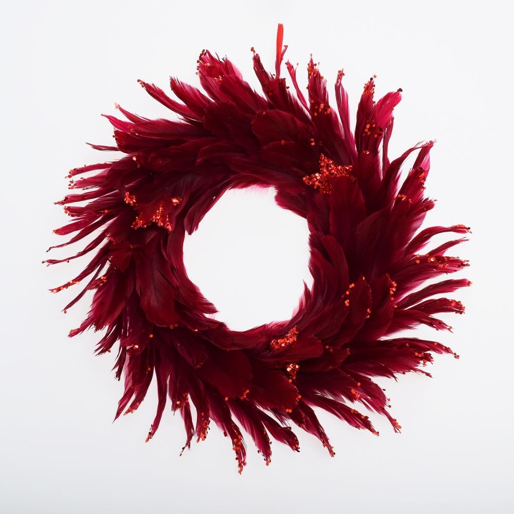 Dekorácia Veniec bordový perie 40cm