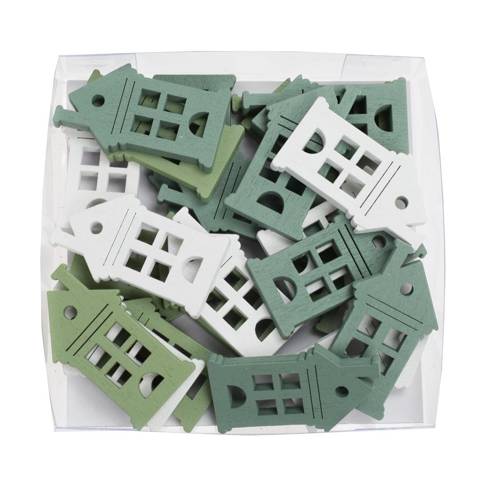 Dekorácia Drevené ozdoby domček bie/zel s/24 9*9*2cm