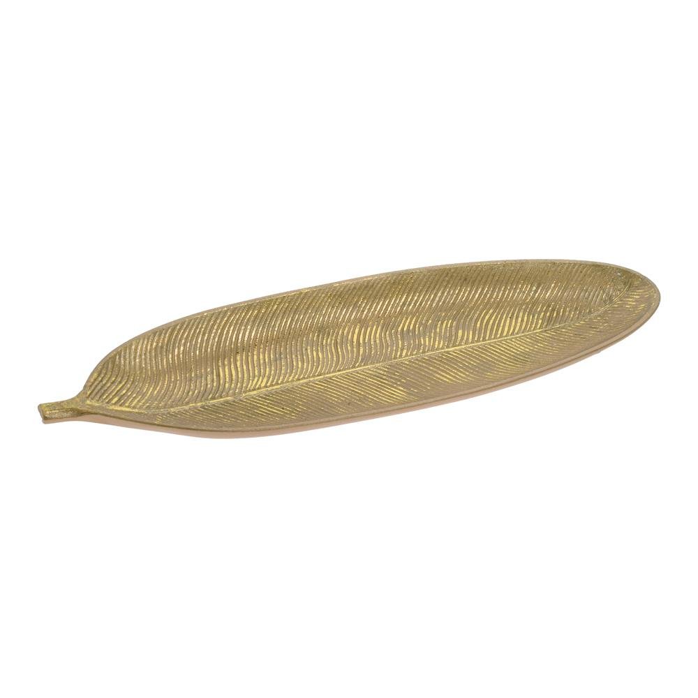 Dekorácia Tácka list zlatý drevo 49,5*18*3cm