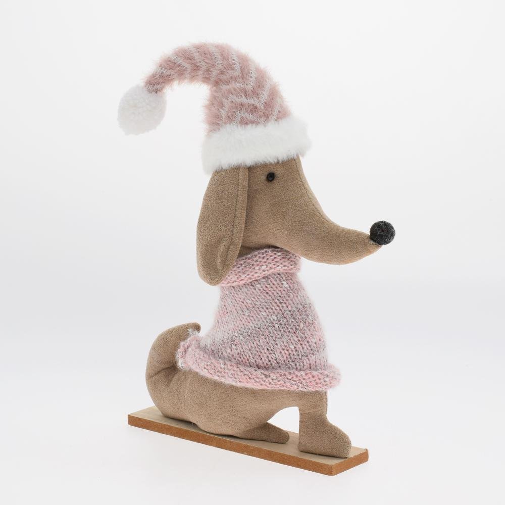 Dekorácia Pes hne/ružový textil 23,5*5*34cm