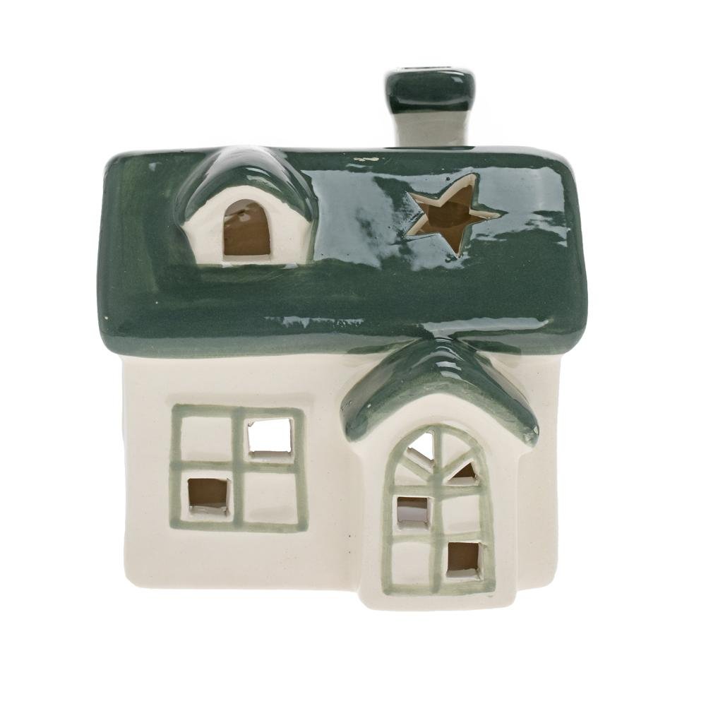 Dekorácia Domček bie/zel na sviečku porcel. 14*10,2*12cm