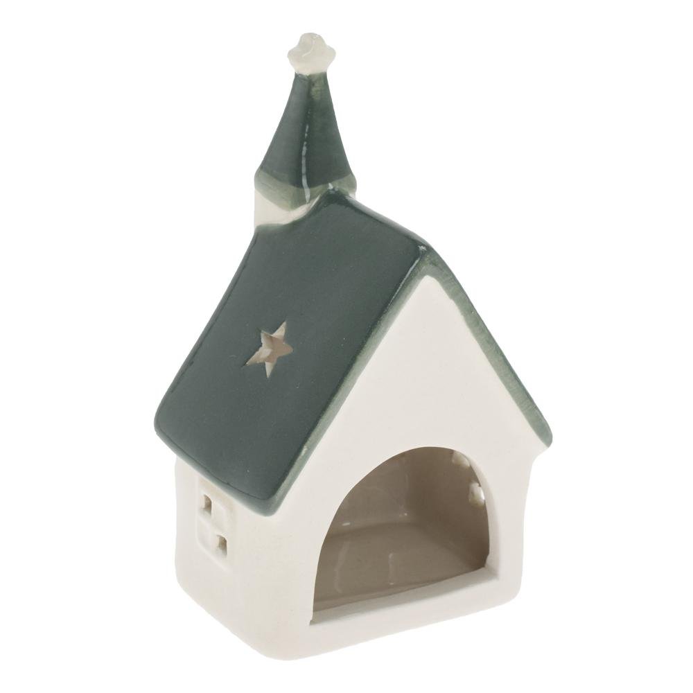 Dekorácia Kostolík bie/zel na sviečku porcel. 8*7*13cm