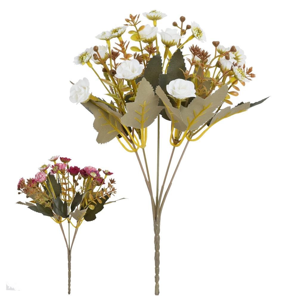 Dekorácia Kytica ruža,chyrzantéma, mix/2f 28cm