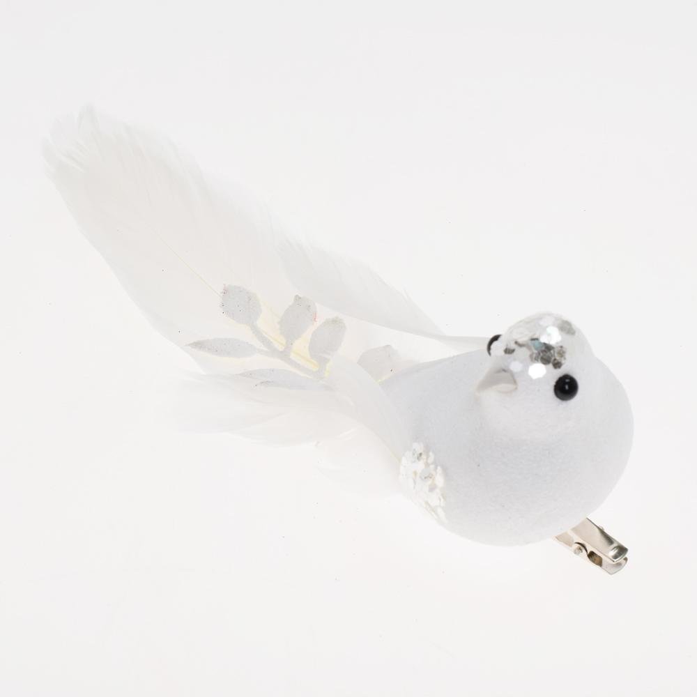 Dekorácia Vtáčik biely na štipci 19*5,5*7cm