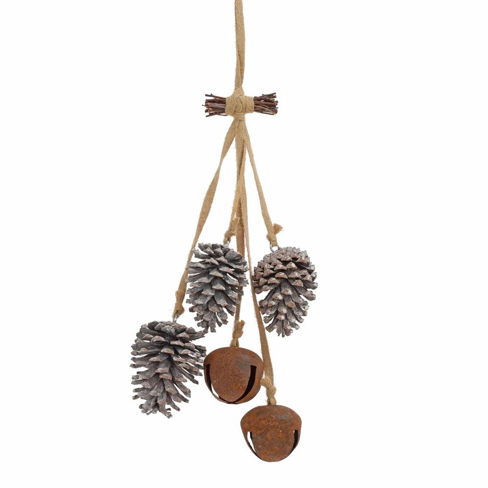 Dekorácia Záves šišky, rolničky bie/hrdz. 13*8*56cm