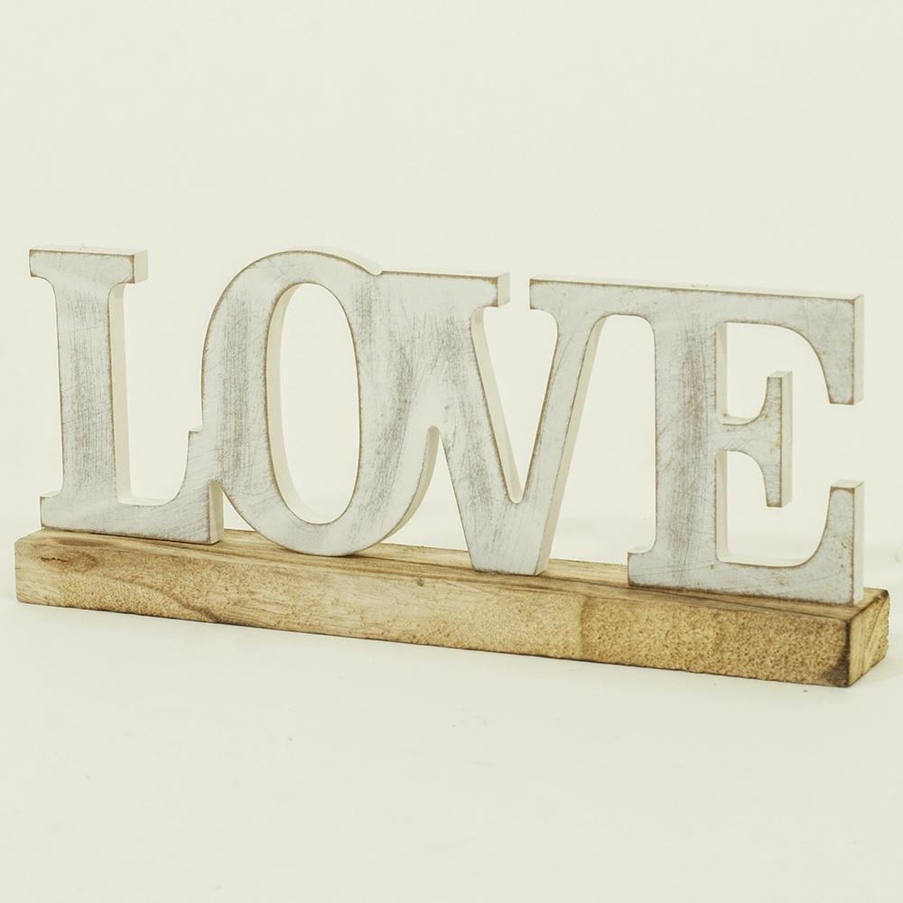 Dekorácia Drevo nápis love biele