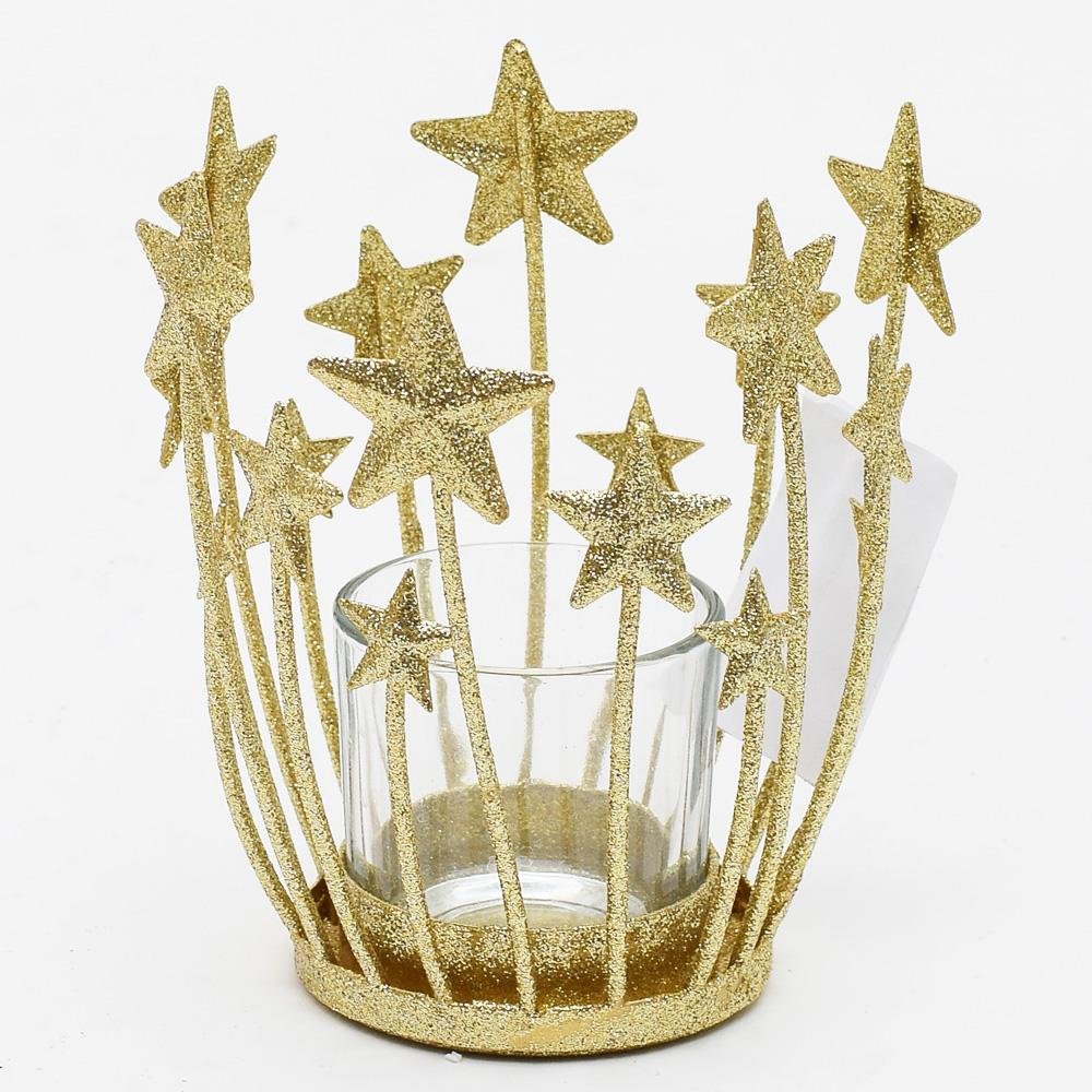 Dekorácia Svietnik hviezdy zlaté 14,5x11x11cm