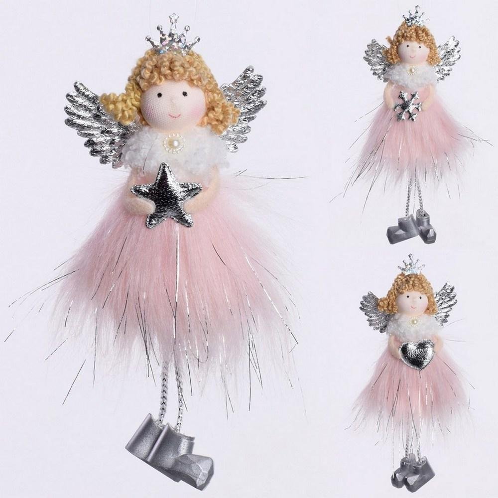 Dekorácia Anjel záves 19cm mix 3 ružový