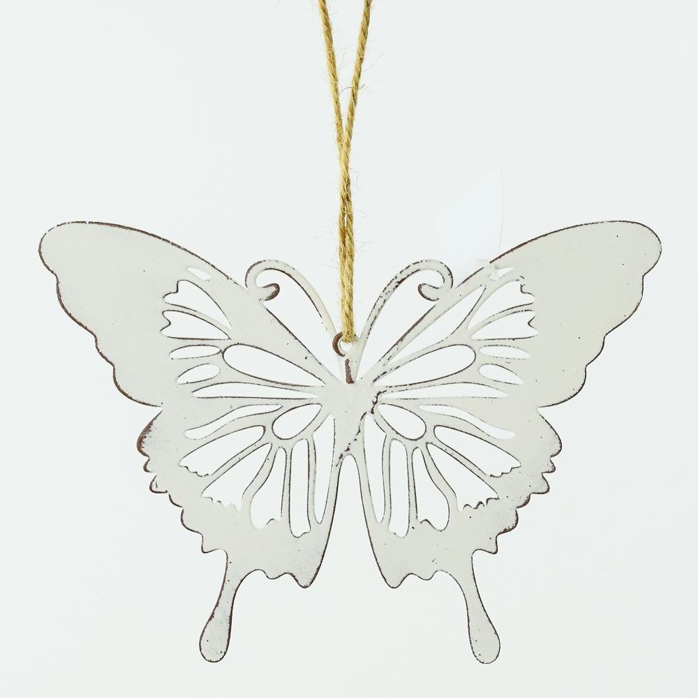 Dekorácia Motýľ kov závesný biely 16x11,5x0,1