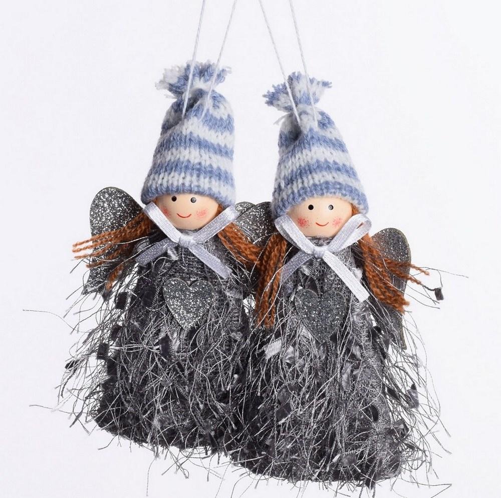 Dekorácia Záves anjel s/2 12cm sivý