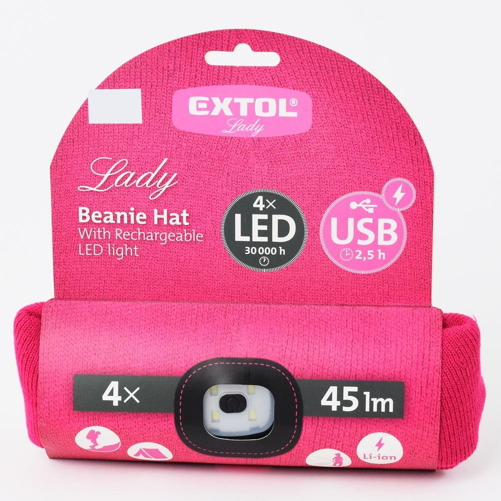 Dekorácia Pevnácenačiapka s čelovkou, ružová 4x led,45lm, 300amh usb nabíjanie