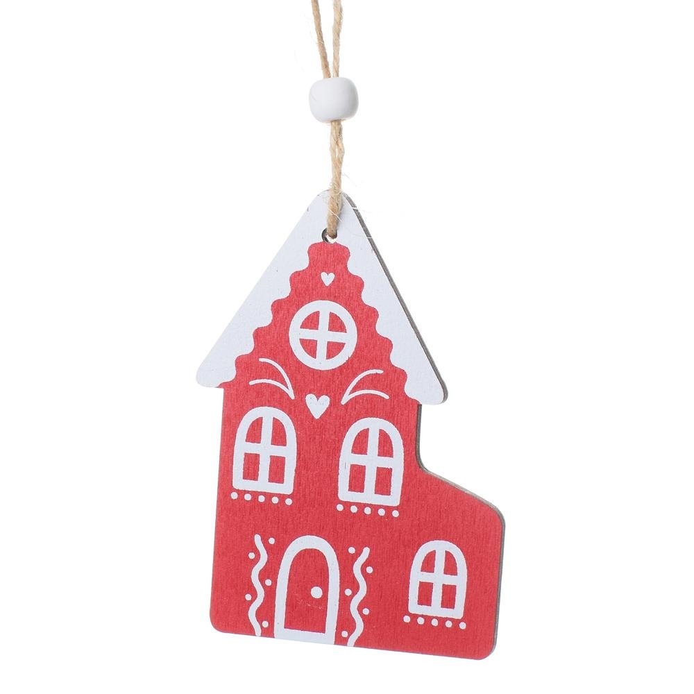 Záves perník. domček drevo bie/čer 6.5*0.5*9.5cm