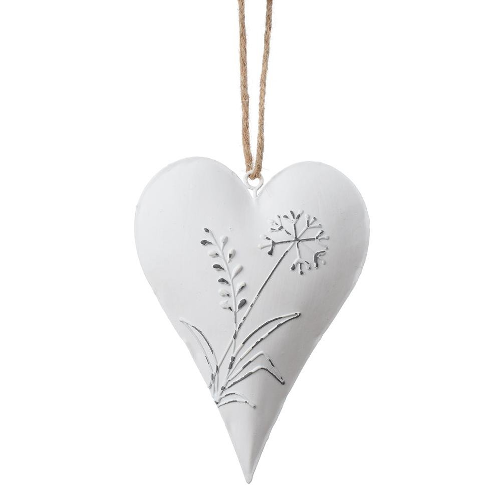 Dekorácia Záves srdce kvet. motív biely plech 13,5*10*2cm