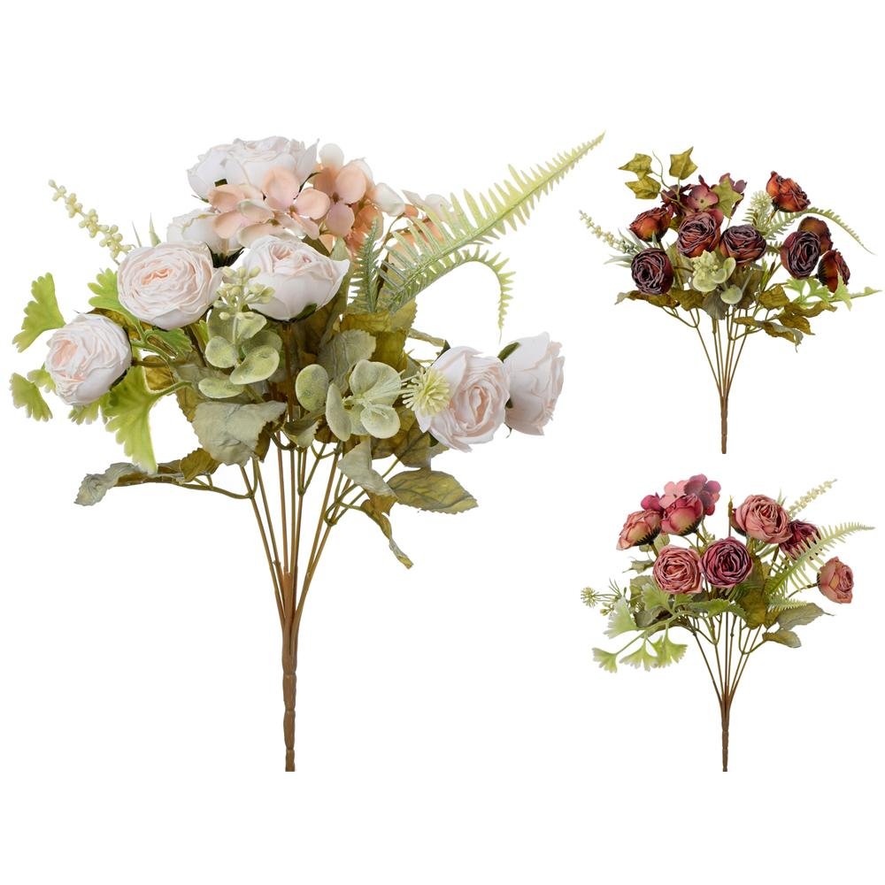 Dekorácia Kytica ruža, hydrang., drob.kvety, zeleň, 3f 29cm