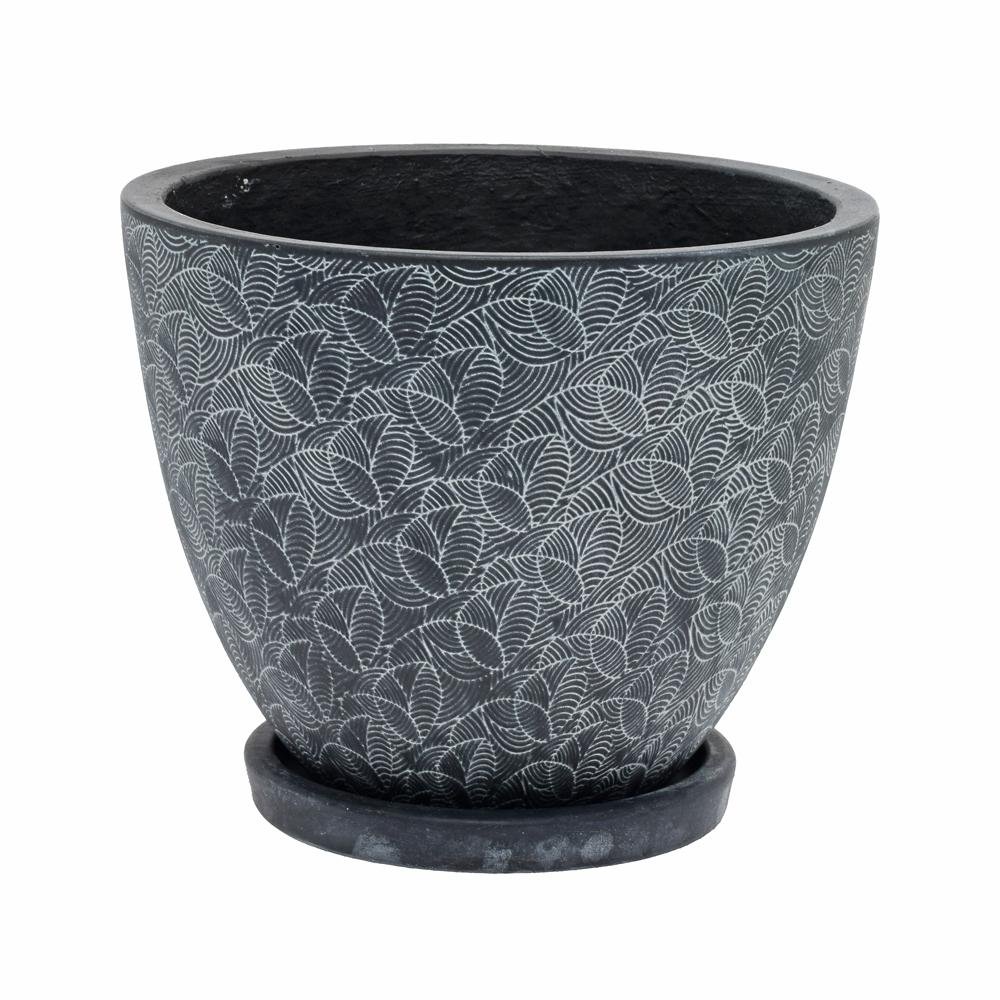 Dekorácia J83 kvetináč + miska okrúhly leaf čierna 24h19,6cm s