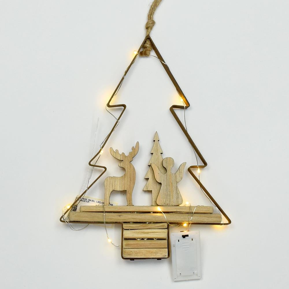 Dekorácia Záves strom anjel led drevo natur 21x4x27cm