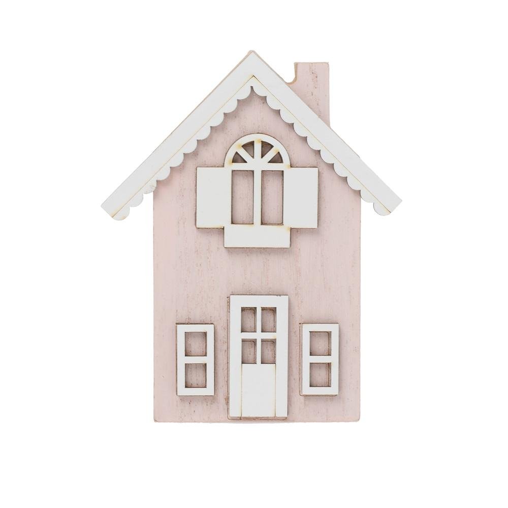 Dekorácia Dom drevo 12x9,5x2cm ružová