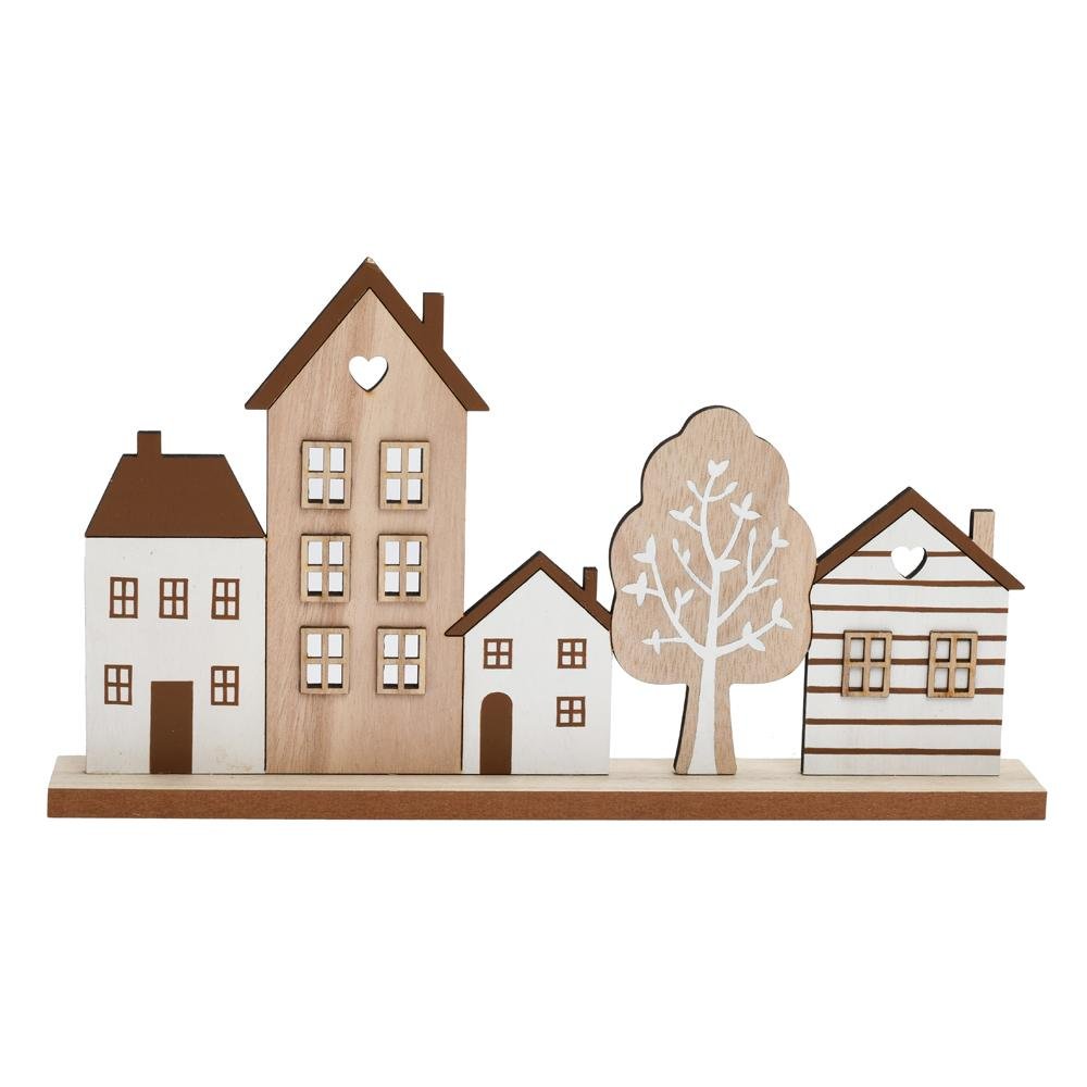 Dekorácia Domčeky drevo 30x4x17cm biela+natur