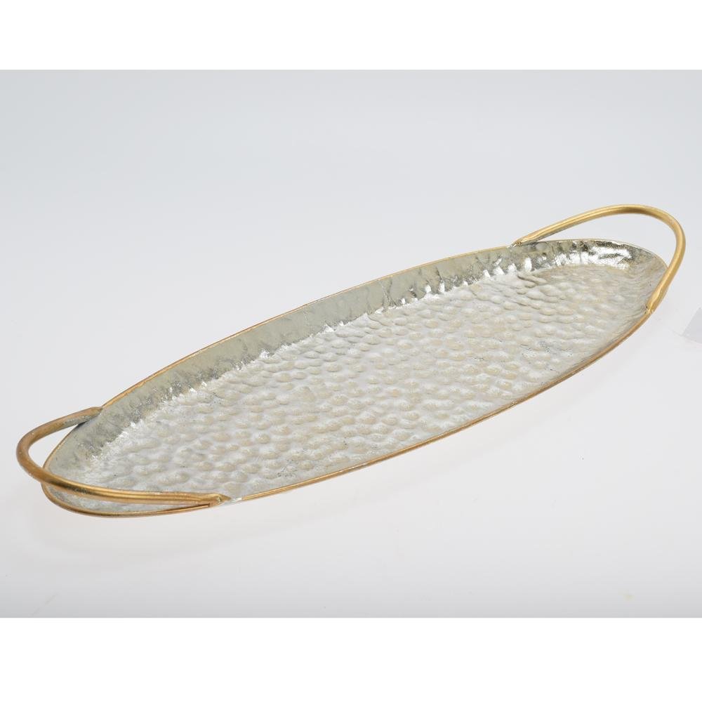 Dekorácia 454fl/s tácka oválna strieb. kov l 62*20*3/6cm