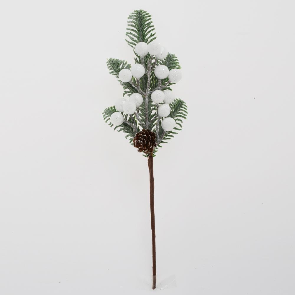 Dekorácia Zápich čečina, bie. bobule, šiška 35cm