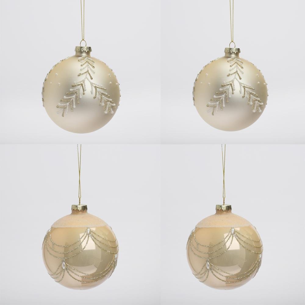 Dekorácia Vian. gule krém/zla sklo s/4 8cm