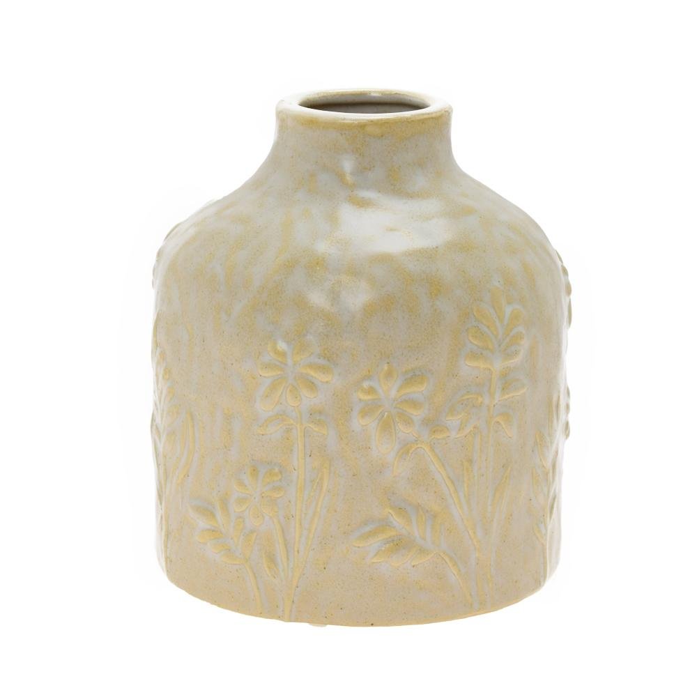 Váza malá krémová, vzor trávy keramika 18*18*20cm