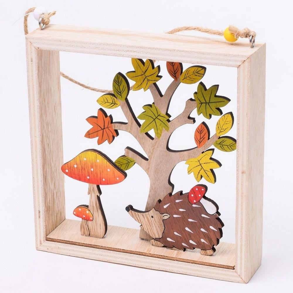Dekorácia Drevená vitrína jeseň záves 15,7x15,7x3,5cm
