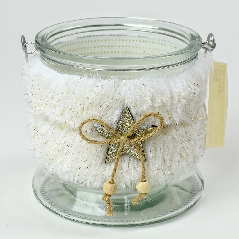 Svietnik kožušina sklo biely 13x12cm