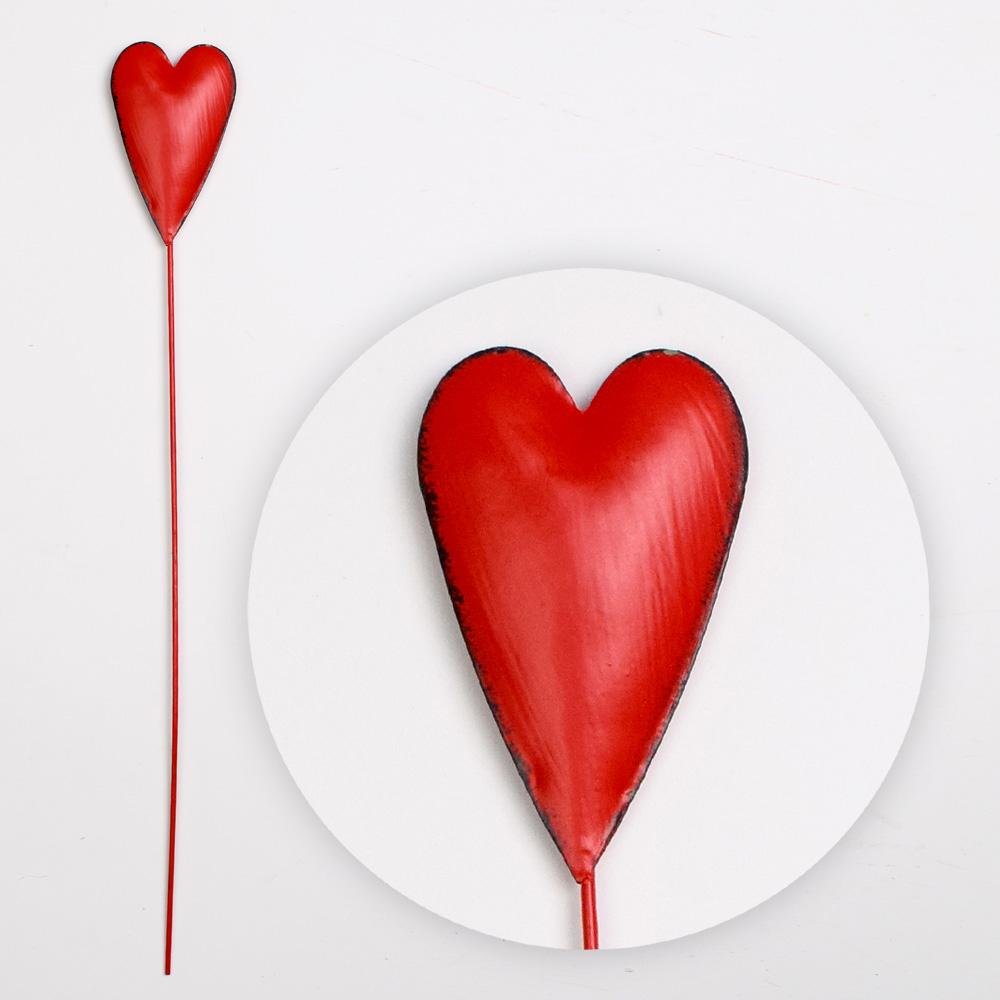 Dekorácia Zápich srdce kov 4,5x31cm červené