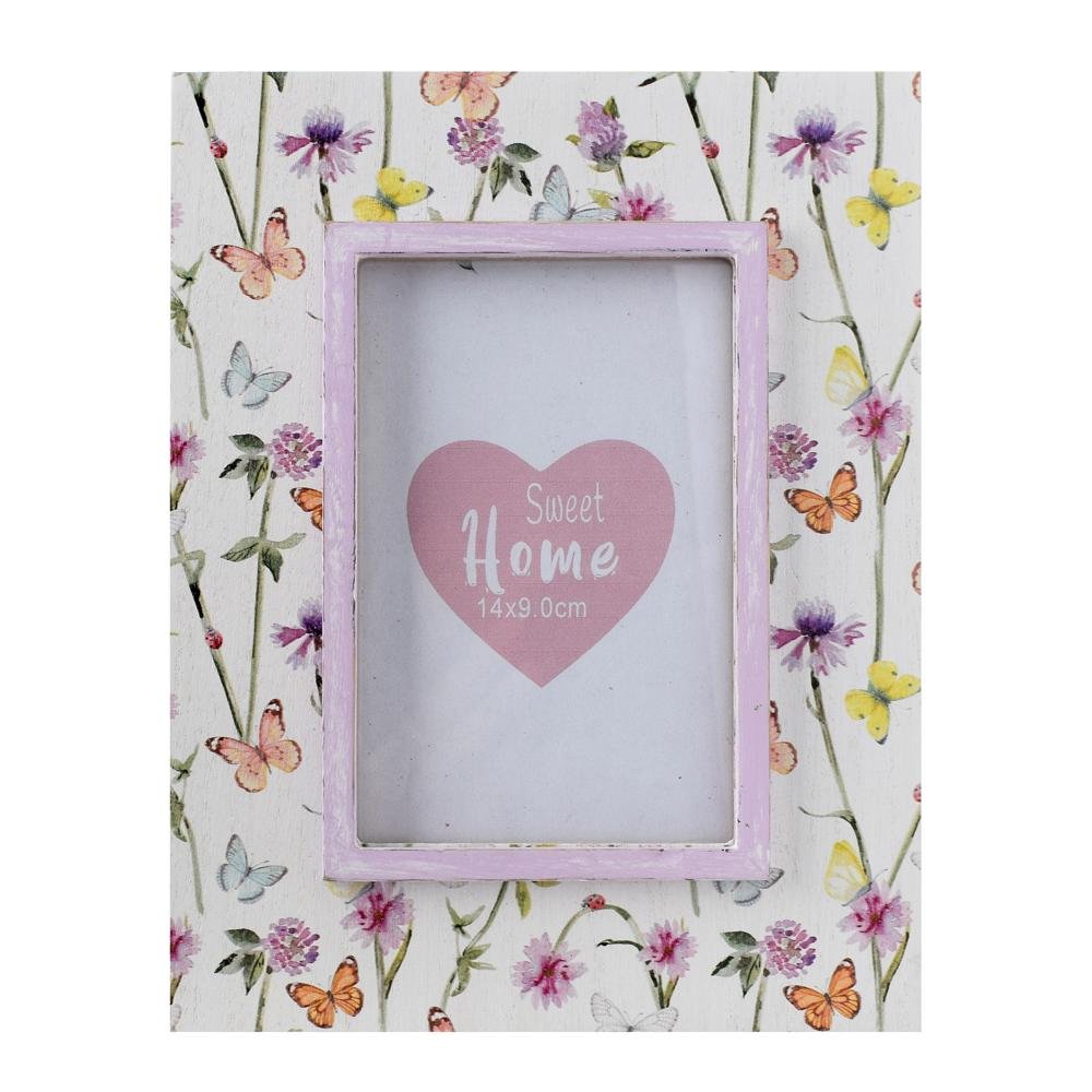 Dekorácia Rámik kvetinový motív bie/fia drevo 18*23*0,9cm