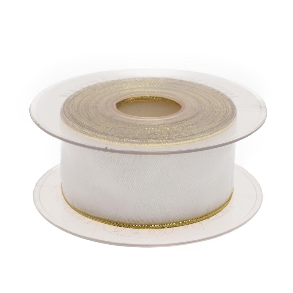 Dekorácia Stuha biela zlatý lem 4cm/20m 3348g 04